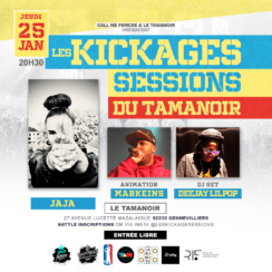 L’événement les Kickages Sessions est un open-mic / battle, destiné à un public mixte, produit par la structure Call Me Femcee. Ce battle nouvelle génération est le RDV pour les jeunes artistes francilien.nne.s. Cette édition sera la première au Tamanoir le jeudi 25 janvier et la première édition 2k24 ✨